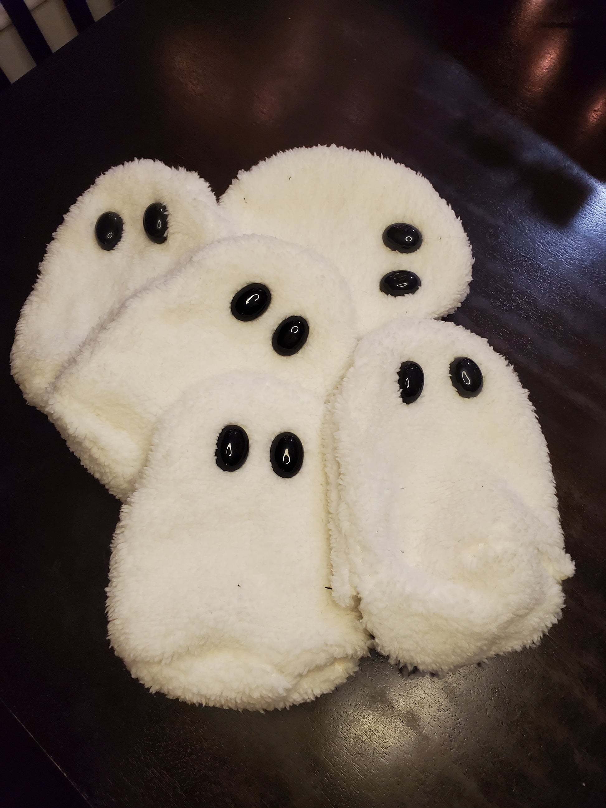 Our ghosts are ready to haunt your home - but I promise they're friendly! Each 100% handmade with a soft sherpa material - they're even hand sewn in one part of the process! Each are very unique and have so much character to bring to the table. Adopt yours before they hibernate until next year!